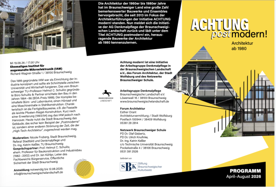 2. Interdisziplinäre Tagung, veranstaltet vom Netzwerk Braunschweiger Schule | Verein zur Pflege der Nachkriegsmoderne und des Architekturdiskurses in Kooperation mit der Fakultät für Architektur, Bauingenieurwesen und Umweltwissenschaften der Technischen Universität Braunschweig, Fachrichtung Architektur, unterstützt durch die Wüstenrot-Stiftung, Ludwigsburg